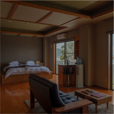 錦江湾と大隅半島をワイドビューで眺められる和洋室