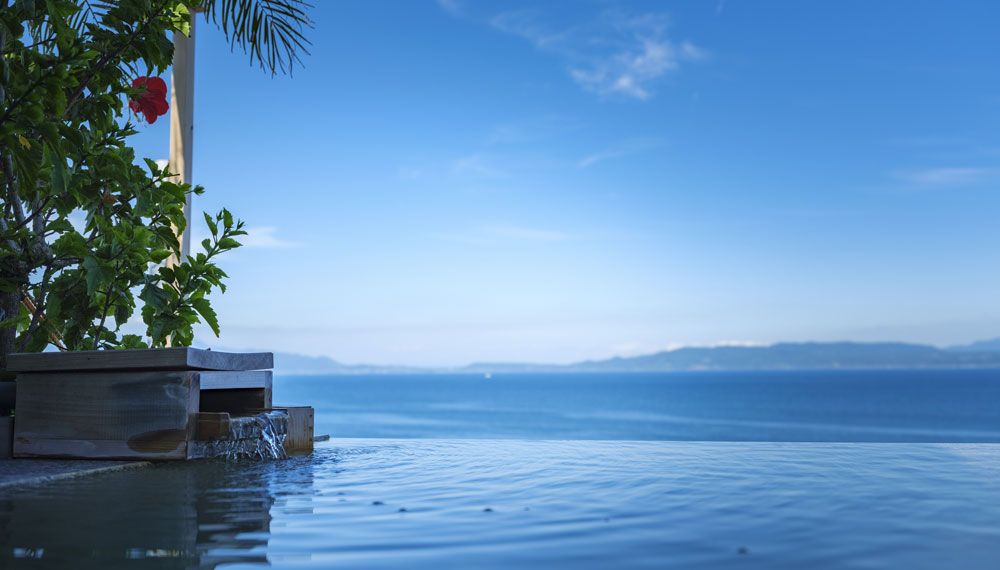 吟松では、天空野天風呂、雲上貸切露天風呂、そして二階大浴場3つの温泉をご用意しています。絶景を楽しめる温泉、海を間近に感じる温泉、緑に包まれる温泉。良質なお湯はもちろん、景色や心地よい波音もあわせてお楽しみください。